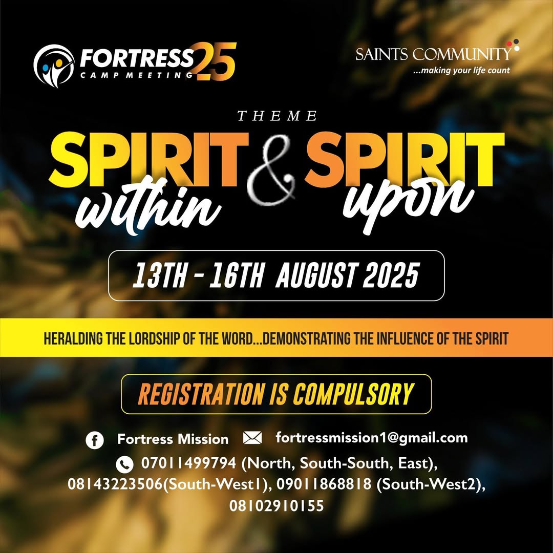 Join US again this year from the 1st to 3rd of September, 2025 for FORTRESS CAMP MEETING; 2025